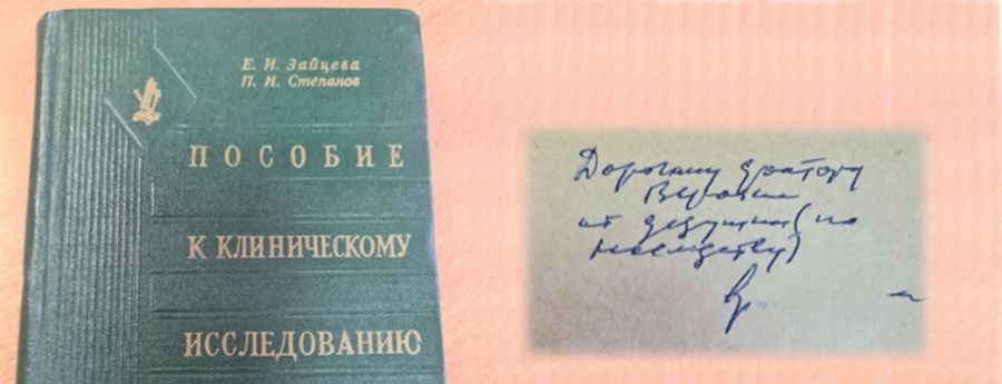 В подъезде дома, на этажерке, куда соседи выкладывают не нужные им вещи, стояла небольшая темно-зелёная книга. В ожидании лифта, наша врач подошла к полке, и с радостным удивлением обнаружила старенькую медицинскую книгу. Это оказалось «Пособие к клиническому исследованию больного», выпущенное в г. Смоленск в 1961 году, ровно 64 года назад. К еще большему удивлению, книга имела дарственную надпись - «Дорогому доктору Верочке от дедушки (по наследству)», и подпись дедушки-врача. Конечно, наша доктор не могла оставить такую ценную книгу мерзнуть на полке подъезда и взяла ее домой.