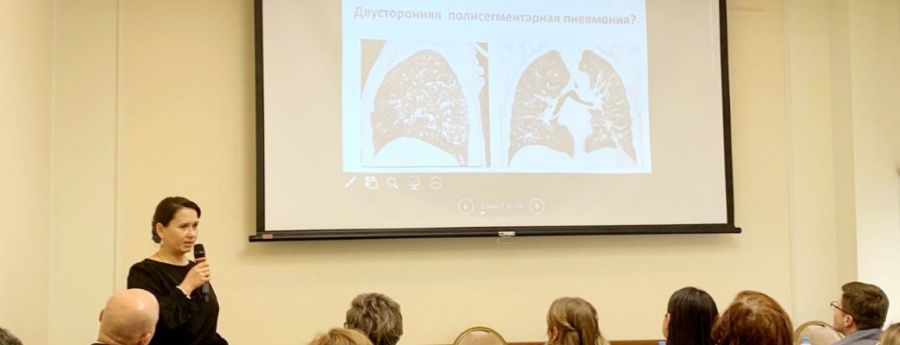 Ее доклад под названием «Порочный круг лечения пневмонии», был основан на реальном клиническом случае лечения на базе пульмонологического отделения, где работает Мария Васильевна, и подготовлен при помощи главного пульмонолога Московской области, доктора медицинских наук, профессора МОНИКИ им. М.Ф. Владимирского Натальи Николаевны Макарьянц.